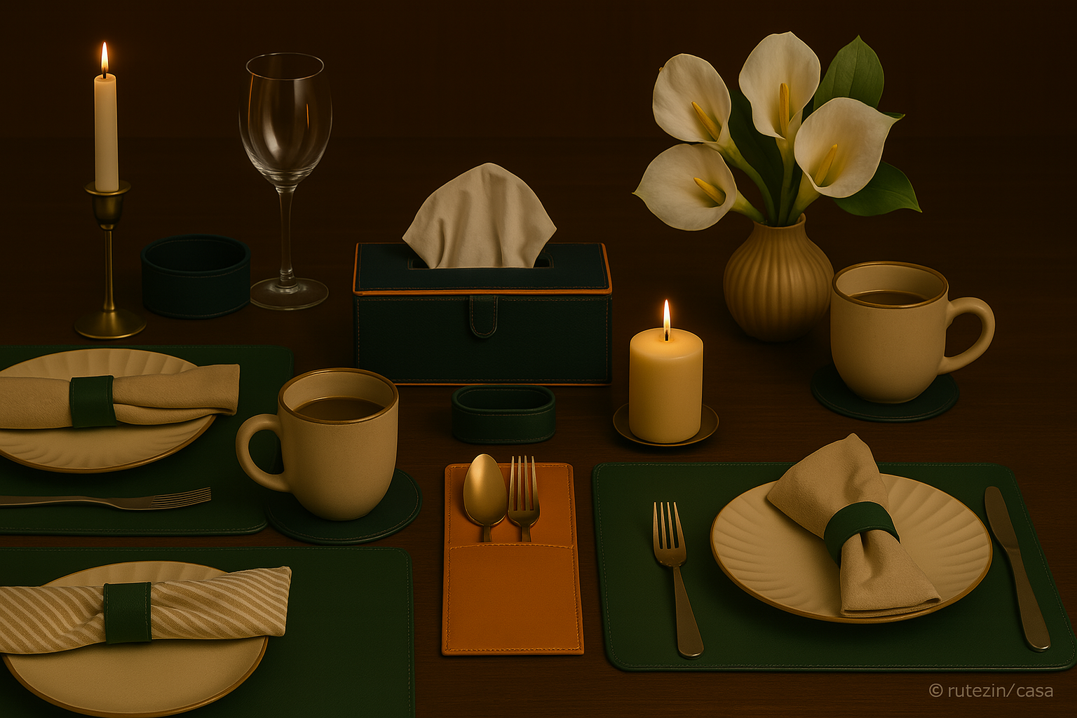 Green Faux Leather Cutlery Holders