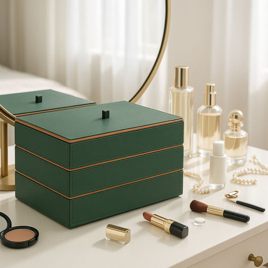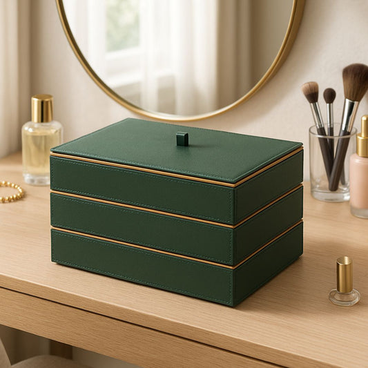 Green Faux Leather Set of 3 Stack Tray With Lid