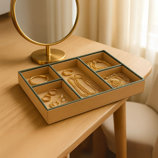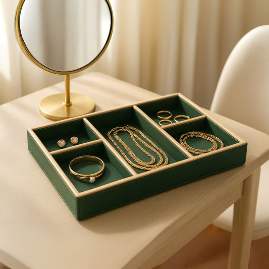 Green Faux Leather Slot of 5 Stack Tray