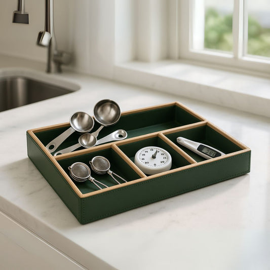 Green Faux Leather Slot of 4 Stack Tray
