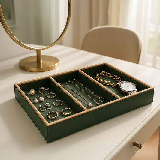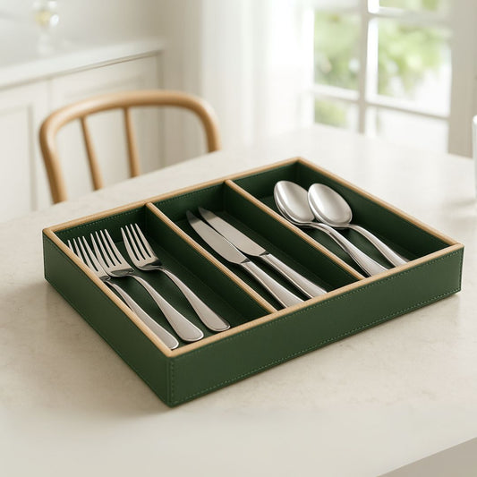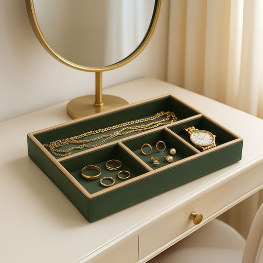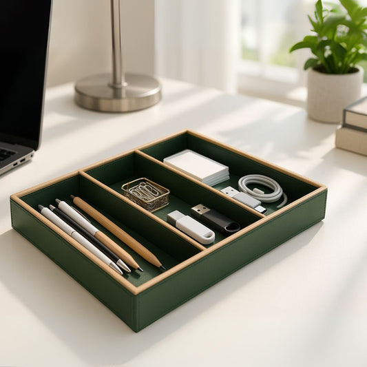 Green Faux Leather Slot of 3 Stack Tray