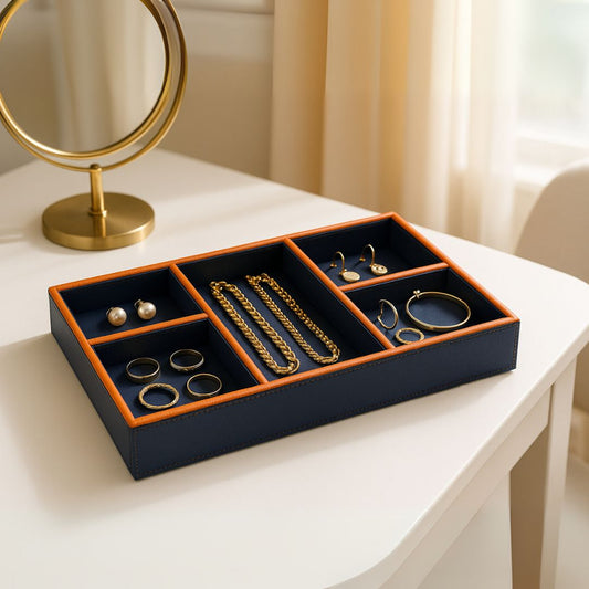 Blue Faux Leather Slot of 5 Stack Tray