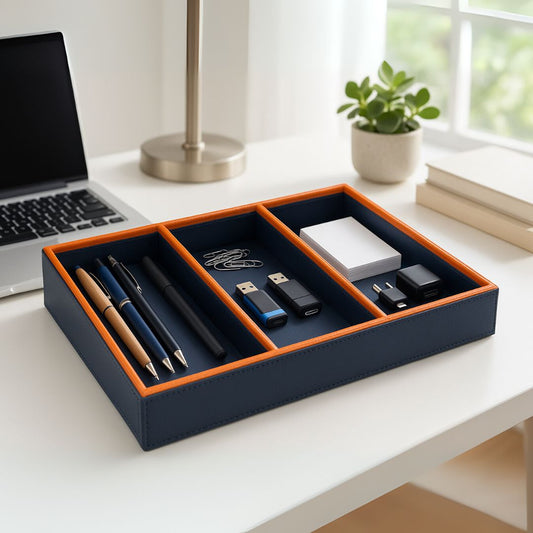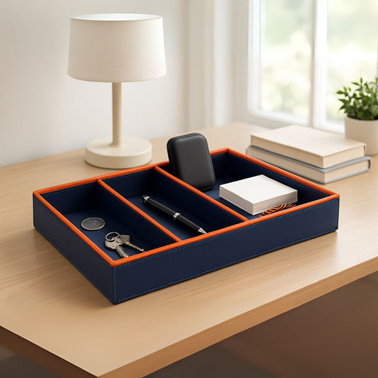 Blue Faux Leather Slot of 3 Stack Tray