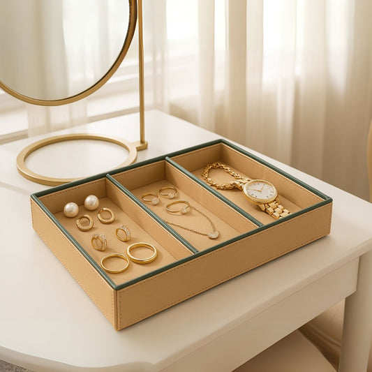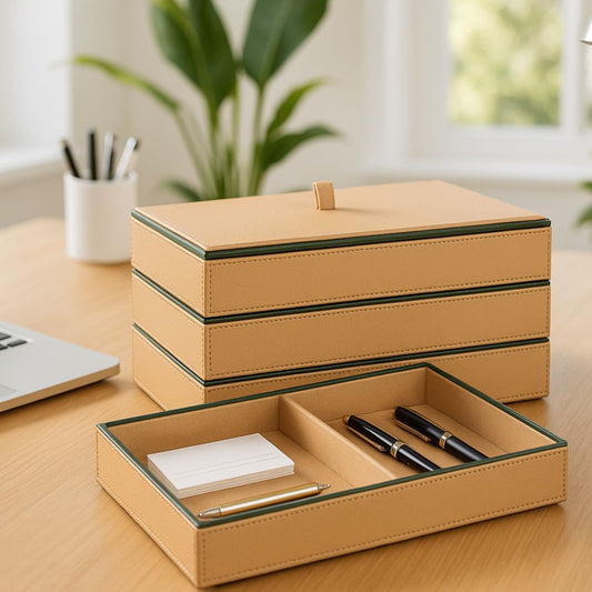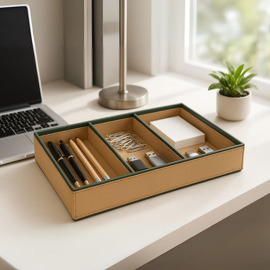 Beige Faux Leather Slot of 3 Stack Tray