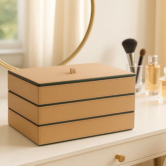 Beige Faux Leather Set of 3 Stack Tray With Lid