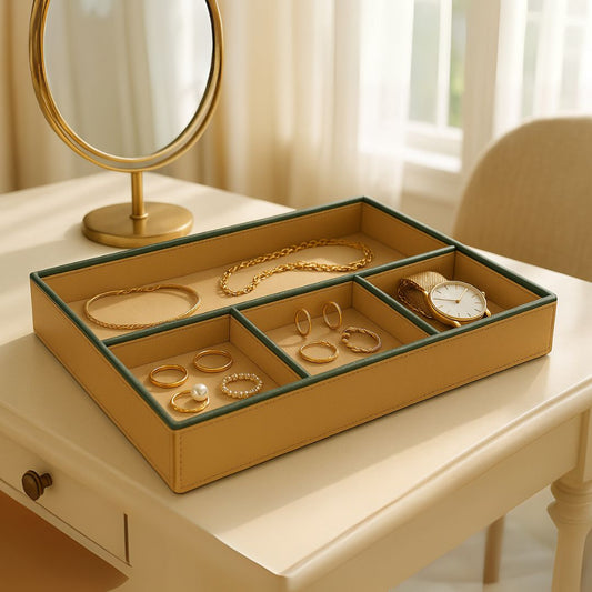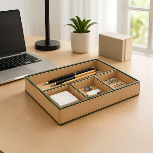 Beige Faux Leather Slot of 4 Stack Tray