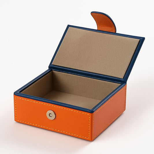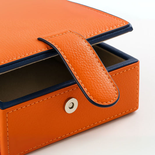 Orange Faux Leather Small Storage Box with Magnetic Lock