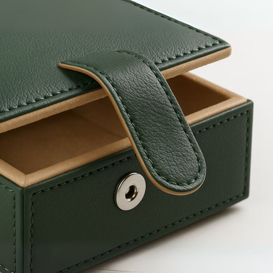 Green Faux Leather Small Storage Box with Magnetic Lock