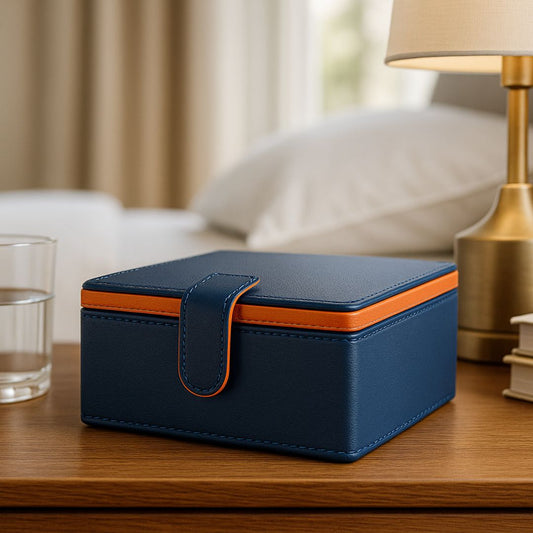 Blue Faux Leather Small Storage Box with Magnetic Lock