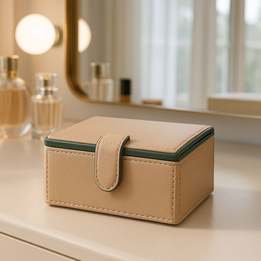 Beige Faux Leather Small Storage Box with Magnetic Lock