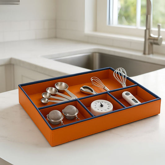 Orange Faux Leather Slot of 5 Stack Tray