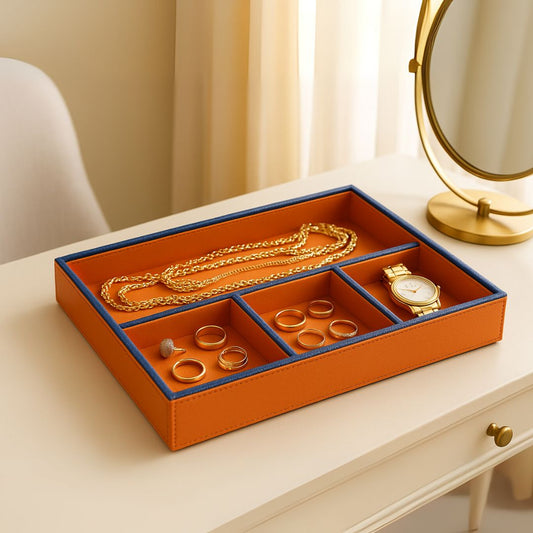 Orange Faux Leather Slot of 4 Stack Tray